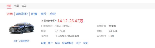 目前,市场上在售的2021款迈腾指导价在18.69~30.99万。为了获取更大的份额,大众将这款车的价格一跌到底,最低配车型在天津地区跌至14.12万,价格优惠幅度非常大,符合预算不足又想拥有一辆德系B级车的消费者需求,看来大众想通过降低迈腾的参考价来再次叫板雅阁。