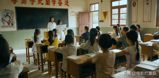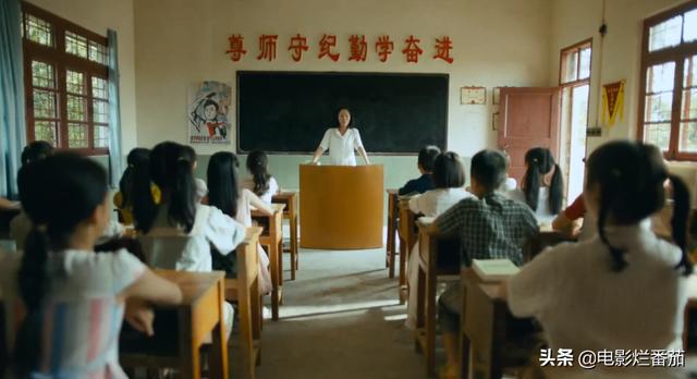 小简爱上课的教室也是,从黑板到讲台,从前面红色的标语,到右侧流动的红旗,样样都是我们小时候教室里的陈设。