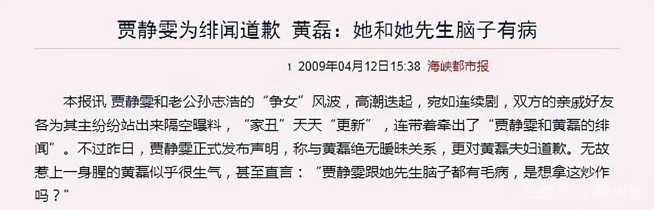 事后贾静雯还曾出面当众向黄磊道歉,称自己当时为了刺激孙志浩才胡乱发短信,而被波及到的黄磊也十分无奈,一度生气的吐槽贾静雯夫妻二人“脑子有病”!