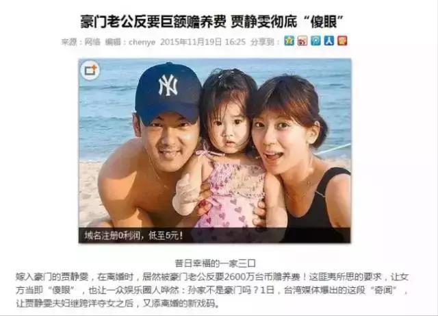 而为了女儿的抚养权,她还不惜支付了2600万台币的赡养费,最终贾静雯在这场婚姻当中损失了千万,还白白搭上了自己的黄金发展期。