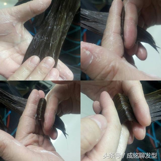 1、全头软化达标后,洗发水洗掉头发上的软化剂,进行烫中护理;