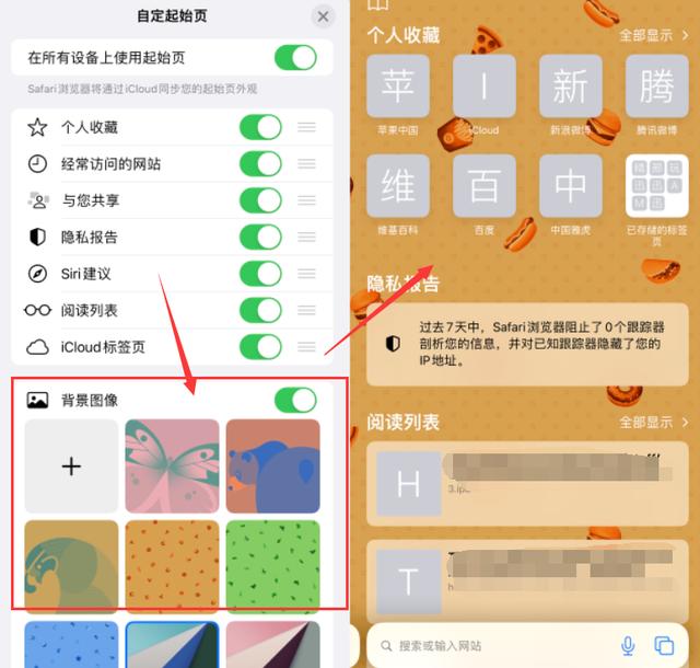 ,该功能位于Safari-后台-底部左下角+号-拉到底选择编辑-背景图像打开即可看到。