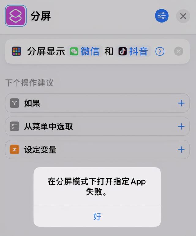 不要冲动升级了,请继续看我分析,快捷指令的分屏功能,在iPhone上运行会显示“
