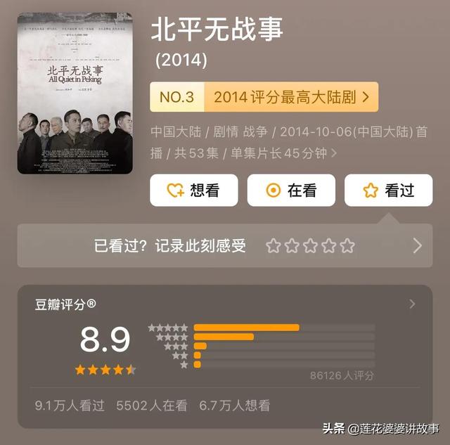这个演员阵容真可以称作好好阵容了吧?最头疼的是后期制作片头排名!7个影帝!把谁放前面把谁放后面?看这些名字怎么办?陈宝国都得放在后面!焦晃出演这部剧的时候80岁了。也放在后面。所有演员都说不在乎排名。这部剧演员自降片酬,甚至半价片酬。还有不要片酬的。80岁的焦晃老爷子,不要片酬不计排名!不像现在有些偶像们挣番位。吵的头破血流。《北平无战事》因为题材敏感,风险太大。投资人担心过审难,也担心收不回成本。所以遭遇了7次投资人中途撤资,最后一次撤资差点导致剧组解散,编剧兼总制片人刘和平一度心灰意冷,剧本写完第三天,他尿血了。在刘和平最艰难的时候,投资人李力拉上柯利明带着钱找到了刘和平,告诉他:“赔了我们也投”,就这样,刘和平、李力、柯利明、再加上半道而入的投资人杨晓伟,加上一共七位影帝一起打造出《北平无战事》。然后这部剧获奖无数。白玉兰奖,金鹰奖,华鼎奖,飞天奖等等。拿奖拿到手软。