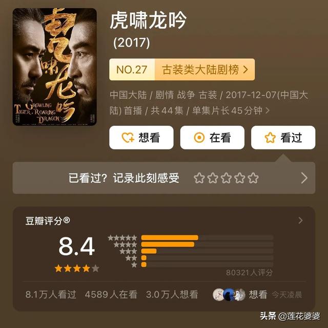 评分低一小部分人觉得看不懂。很用心的一部剧。剧本,道具,服装,梳化,布景,灯光,照明都很用心。《长安十二时辰》看下配乐插曲。作词作曲。