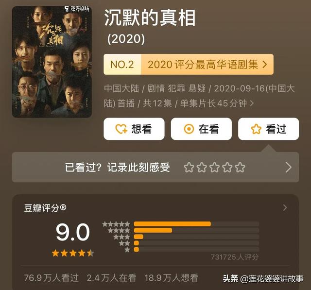 又是一部紫金陈的小说改编的电视剧。只要是这位理工科的男生写的悬疑小说改编的电视剧没有不好看的。《沉默的真相》是一部非常高质量的剧。他不同的叙事风格,他不过分渲染,非常注重人物情感和人物之间的关系。全剧实力派演员完美演绎了正义感给了他们动力,但最终还是胆怯、恐惧、绝望了。这种心理阴影是实在地侵入了人物身心的。评分其实本应高于现在的分数。就是由于剧中的广告植入,现在评分9.0。