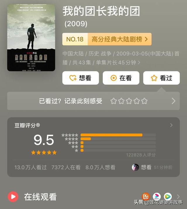 《我的团长我的团》和《士兵突击》一个妈生的亲兄弟。同样的投资人华谊兄弟,同样的编剧兰晓龙的同名小说,同样的导演康洪雷。也同样的高分经典。