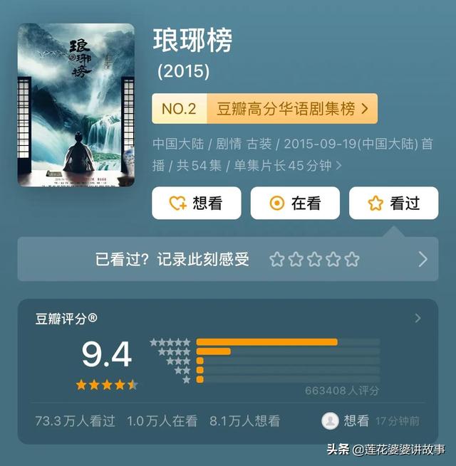 这部《琅琊榜》我总是有特别的感情,也是我重刷次数最多的一部剧。这部剧也是胡歌的成功转型。当时《琅琊榜》制片人侯鸿亮的第一理想人选是黄晓明,黄晓明当时刚刚接下新戏《锦绣缘华丽冒险》,这个剧后来也扑的很惨。黄晓明做梦也没想到,琅琊榜能火到这个地步。所以琅琊榜2的时候果断出演了,没爆不说,还被网友和第一部比较,又被吐槽。