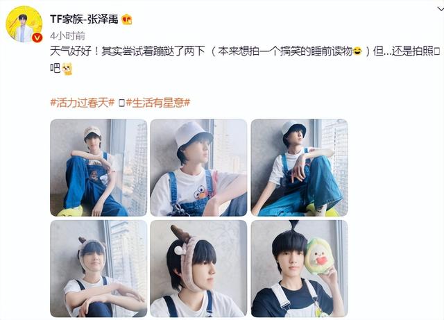。网友:又帅又可爱,做个和拖鞋一样的表情吗?张泽禹背带裤搞怪六连拍释出,冲天辫也太俏皮了,拖鞋和背带裤以及发箍和小挂件都超可爱,噢!活力、可爱、好看、帅气、少年感的张泽禹是背带裤的常驻小宝,张泽禹这次的背带裤