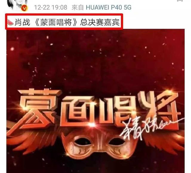 第二个,就是《蒙面唱将》了,作为今年单曲榜第一人的肖战,歌声还是很好听的,《蒙面唱将》将邀请肖战以嘉宾的身份出席总决赛。但是这里小编关注的却是这次肖战会唱什么歌呢?会不会再度燃爆全场!值得期待。