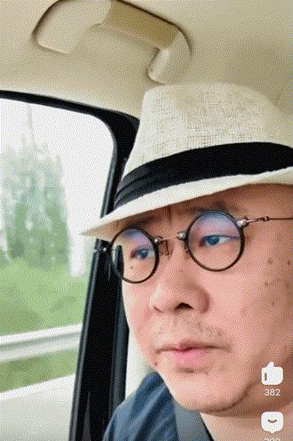 视频画面中,刀郎坐在飞驰的汽车里面,他头戴米色编织帽,身穿一件简单的蓝色上衣,脸上带着圆圆的黑框眼镜,非常抢眼。