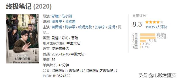 整部作品的完成度客观的说不如《沙海》,不过得益于几位顶流的超高人气,这部作品还是拿到了一个不错的成绩。