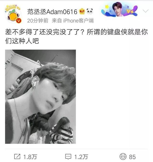 之后,因键盘侠的恶意攻击,范丞丞更是亲自下场回怼:“差不多得了还没完没了了?所谓的键盘侠就是你们这种人吧”!粉丝们直呼霸气!