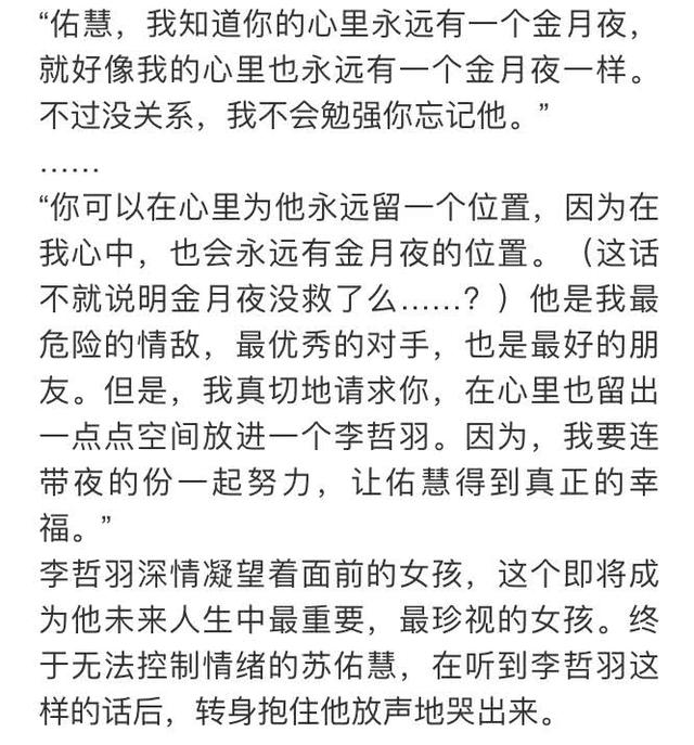 金月夜因为生病主动认输,苏佑慧和李哲羽在一起了,金月夜一个人出国治病。