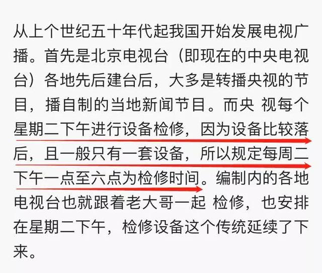 单纯如我,一直以为家里的老旧电视剧信号不好,长大了才知道全国人民要经历:电视台要在周二设备检修。