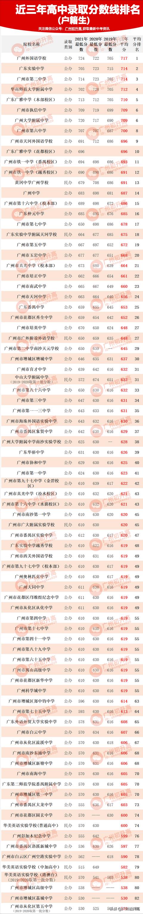 广州大学附属中学南沙实验学校和广州市第二中学南沙天元学校虽然不是示范性高中,但也在第三批面向全市招生,所以上面也放进去排名;