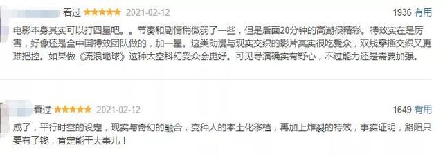 观众口碑有褒有贬,有观众表示这部电影的特效刷新了对于工业电影特效的认知,虽然是本土制作的电影,但特效已经达到了国际大片水准。