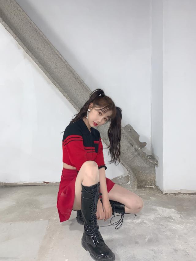 红黑配色的针织衫配上一款红色半身裙,同时配上一双黑色骑士靴,小蛮腰和大长腿都相当吸睛。你还真别说,虞书欣虽然脸蛋有一点肉肉的,但是身高168cm的她体重却只有94斤,绝对是让人羡慕的女神身材啦。