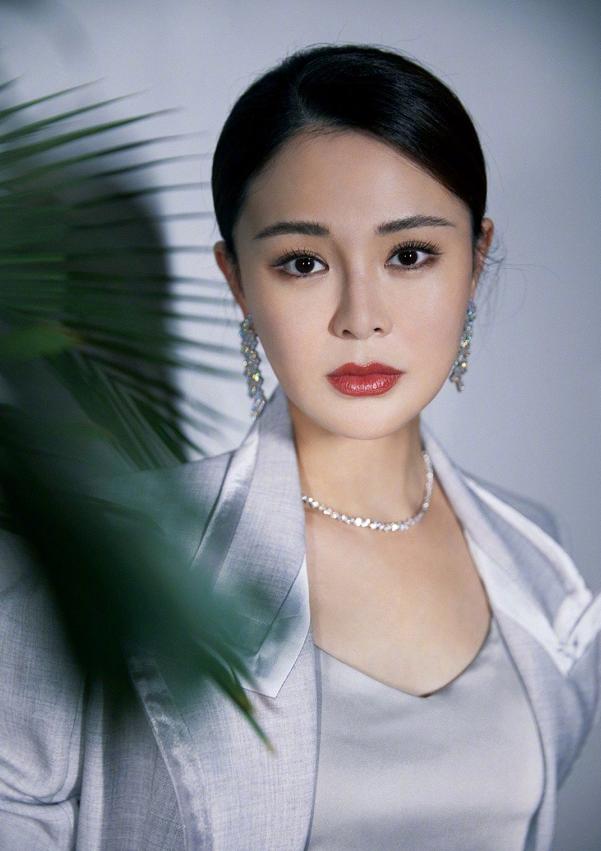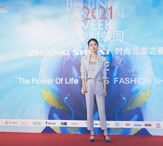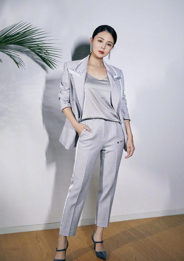 的作用,穿着形象魅力很突出。关悦的银灰色西装套装搭配