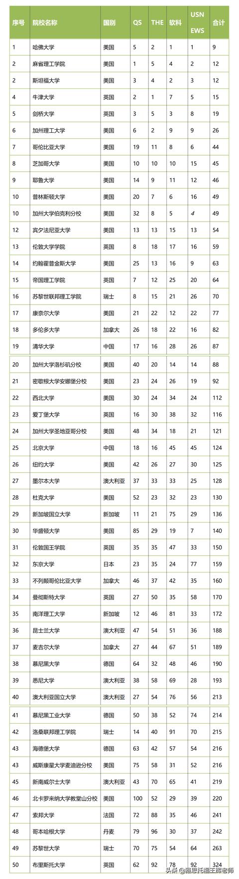 除这五十所院校外,其余的都是有一个或者多个排名在前100以外。所以,非常看重院校排名的小伙伴,在选校的时候可以参考以上信息。