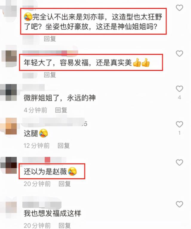 网友们在看到这条动态后,评论:“完全认不出来是刘亦菲,这造型也太狂野了吧?坐姿也好豪放,这还是神仙姐姐吗?”还有人将她错认成赵薇。