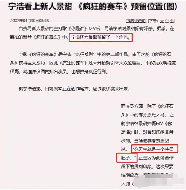 ,这背后人的地位和影响力,以及圈子,可想而知。并且在这次mv的合作中,宁浩导演还觉得景甜是一个不错的资质,天生就是做演员的料!