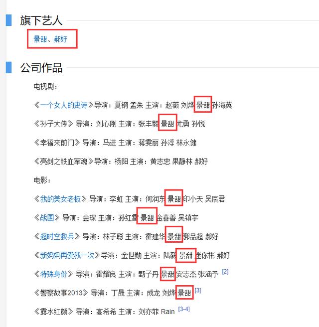 不仅如此,这家公司投资的作品,大部分都有景甜的身影,不知道的,还以为这是景甜的个人工作室!