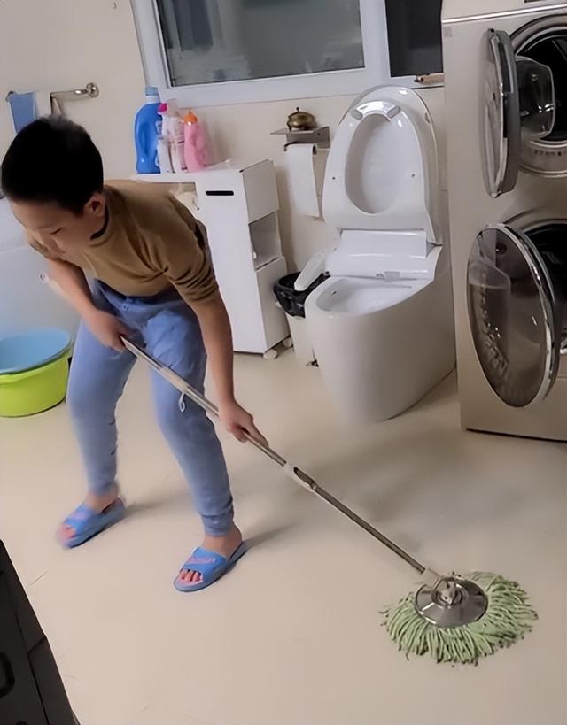 从视频中看得出刘和刚与女儿关系十分好,父女俩和谐有爱。刘和刚也会经常在社交平台上发一些与家庭有关的日常。视频中是刘和刚的儿子在拖地,小朋友穿着家居服,拿着拖把在地上认真地拖来拖去,不放过每一处角落,画面中地板十分干净,小朋友很是用心。