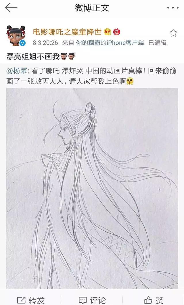 比较靠谱的说法,我觉得还是这个,就是杨幂画的敖丙没有角,很多网友都发现了: