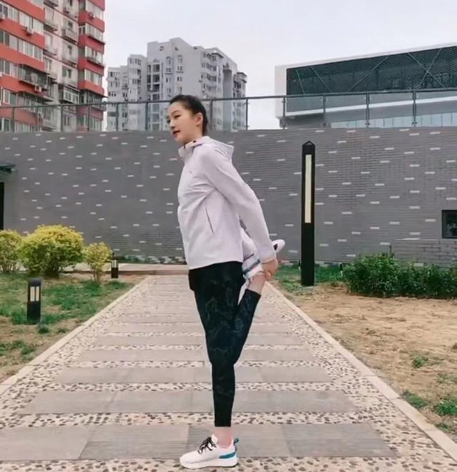 在没有时间去健身房锻炼时,关晓彤会在小区楼下跑步。图片中的关晓彤素颜出镜,穿着宽松的白色运动外套与紧身裤。为了避免受伤,在跑步之前关晓彤认真做着拉伸运动,边做边为大家讲解每个动作的要领。