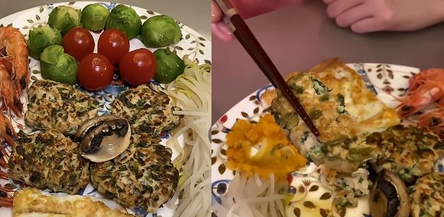 画面中的关晓彤穿着简单的粉色短袖,坐在桌子前享受着晚餐。盘子里的食材新鲜丰富,海鲜蔬菜水果样样齐全。在视频中关晓彤重点介绍了她最爱吃的香菜饼,是用香菜与鸡胸肉碎所做,笑称是香菜爱好者的福音。关晓彤语气温柔,十分平易近人。