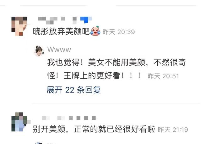 网友在评论中说关晓彤开美颜功能太过,整张脸看起来很奇怪。大家纷纷表示关晓彤不用开美颜就已经很好看。