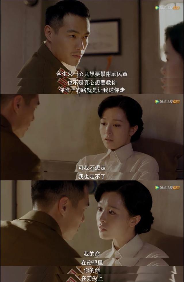 她担忧同伴的安危,在吴大队长准备豁出性命救她时,一句“我的命,在密码里,你的命,在刀尖上”是她身上理智与情感的交锋碰撞。