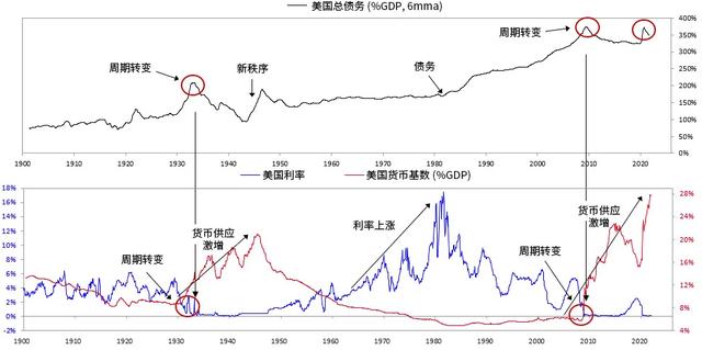 这会导致利率的大幅上升,或者大举印钞购入债务以人为降低利率。下图显示的相对于GDP的债务资产总量,意味着持有者在对债务资产失去兴趣后会大量售出。