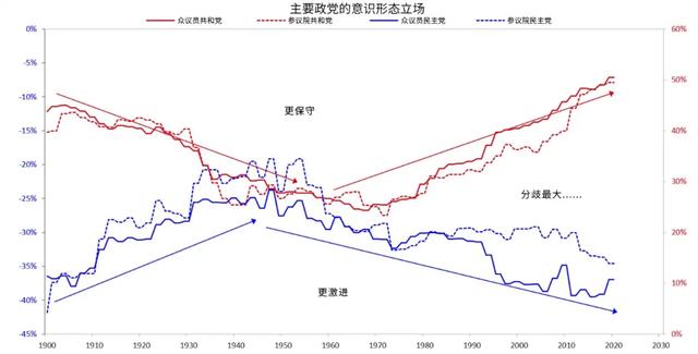 下图表显示,相较于1900年以来的任何时期,现在美国共和党更加右倾,美国民主党更加左倾,所以两党分歧巨大。美国现如今存在的巨大冲突,置美国于一个危险的境地。例如,完全有可能双方都无法接受2024年大选失利。这样的政治冲突损害生产力,并形成不友好的居住环境,进而损害资本流动。