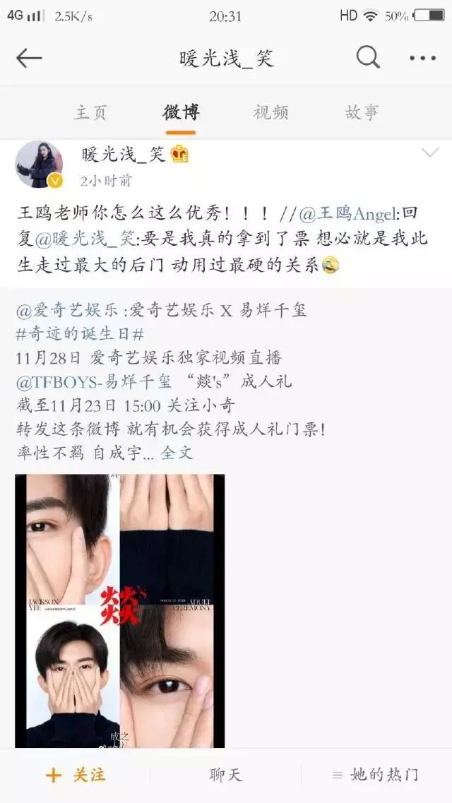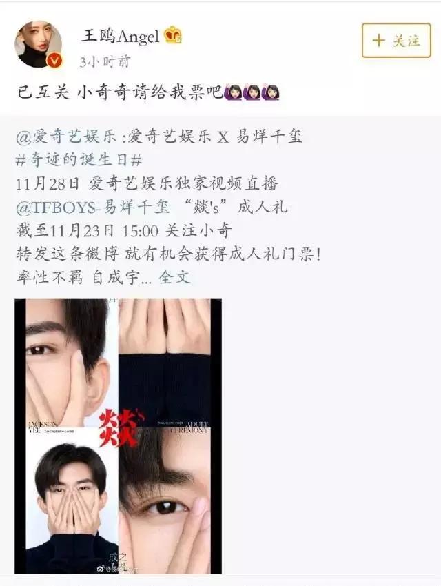 当然,甚至要和粉丝抢千玺的生日会门票,还放话,要是能得到门票,估计是这辈子走过最大的后门。