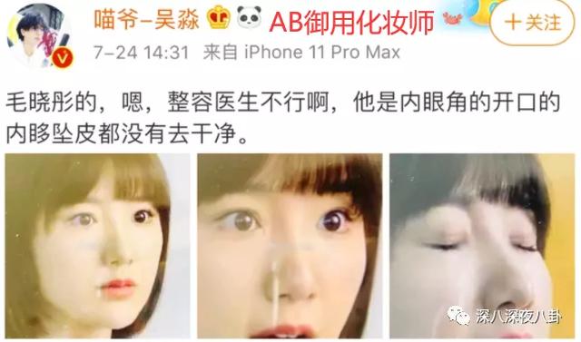 但毛晓彤的眼角开得不算很好,鼻姐的御用化妆师曾经实名开麦吐槽过,要她去找医生维权。