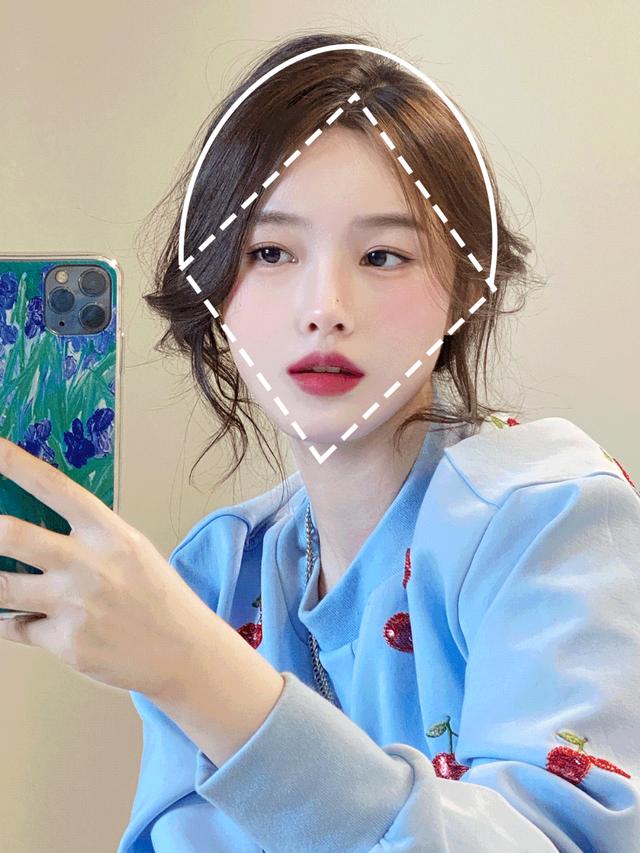 ③盘发、扎发垫高颞部,菱形变瓜子脸
