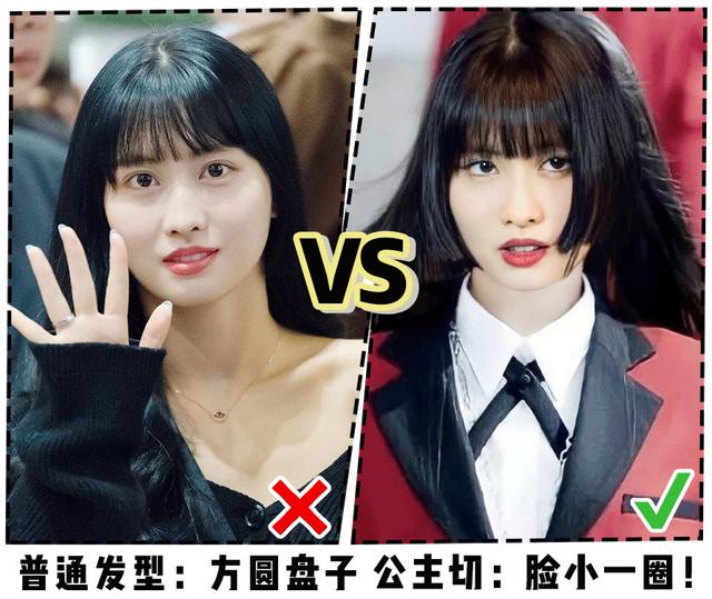 ,摆脱了土气,更有时尚感,跟甜美挂圆脸的适配感不要太强。