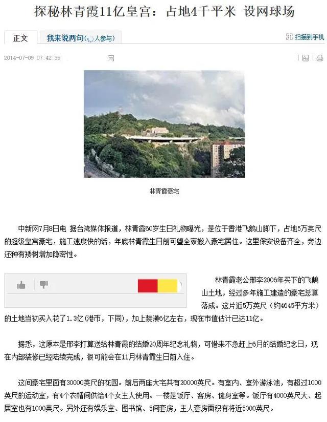 和黎姿大豪宅同样壕的还有林青霞的,2015年林青霞被老公赠予了一套被称作是超级皇宫的豪宅,2006年买下土地时花费1.3亿港币,加上杂七杂八的装潢费,在2014年建成时就价值八个多亿了!