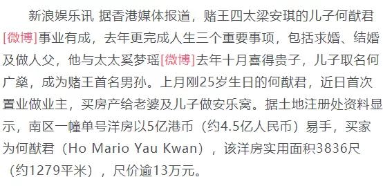 还有何猷君奚梦瑶的,2020年被赠予了一套13万每平、实用面积高达1279平、价值4.5亿人民币的超级大大大豪宅,长孙爸和长孙妈真的是凭努力赚豪宅啊,但有钱人的理念咱不懂,至于送这么大的么?