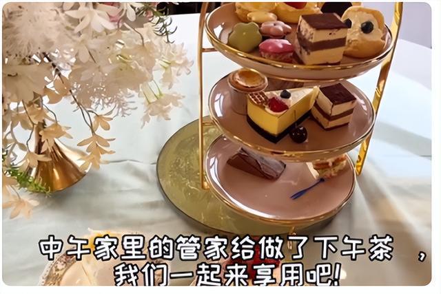 学习的间隙,管家还会给她端上一顿高级的下午茶。而就是喝下午茶,也还是仪式感满满,换上设计师搭配的小裙子,才坐到桌前。