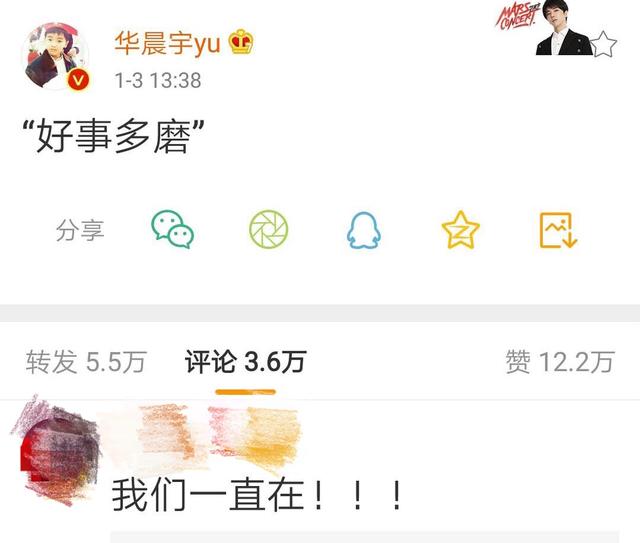 首先,在1月3号时,华晨宇曾因为与《我是歌手》综艺的纠纷,而在社交平台发文:"好事多磨。"这动态也引得粉丝纷纷回应道:"我们一直在。"