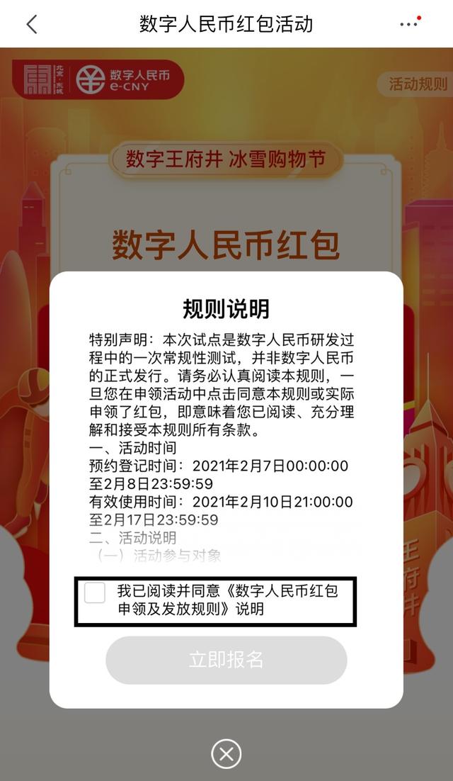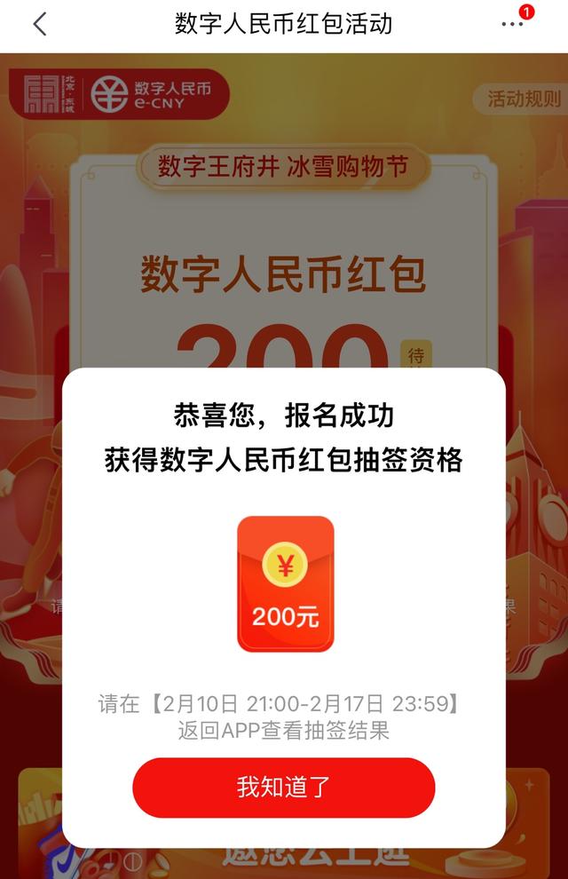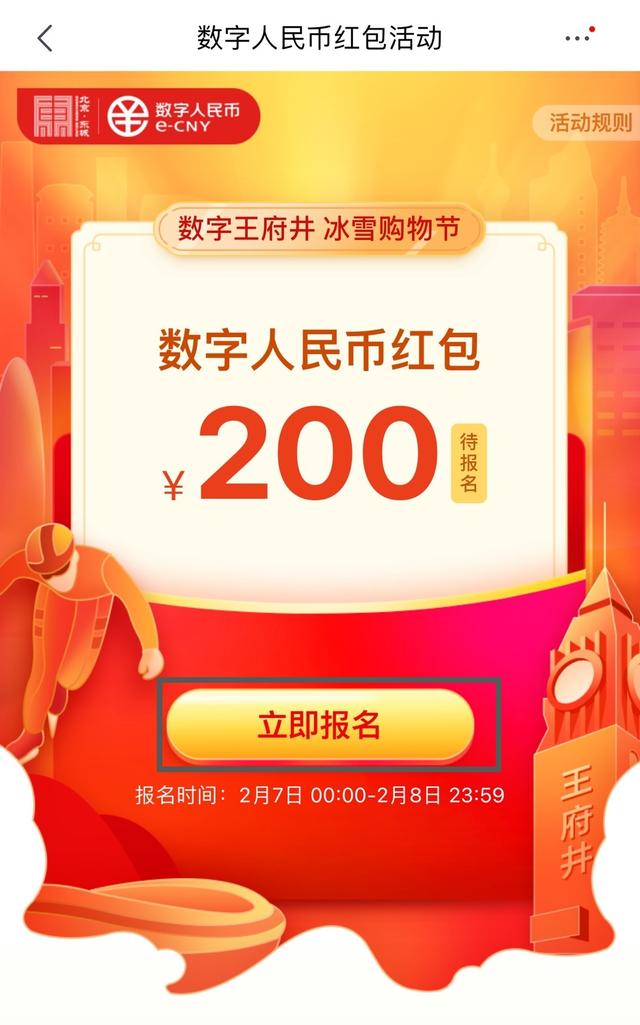 通过预约、抽签发放5万份数字人民币红包,每份红包金额200元。