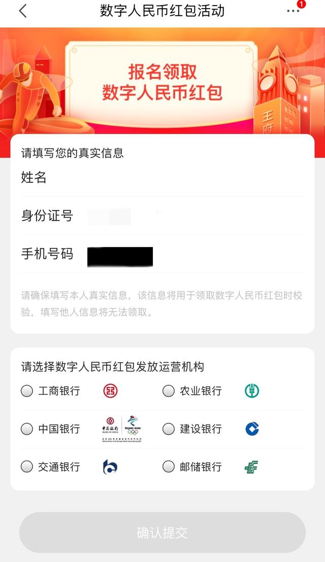 step4——进入报名领取页面,填写真实信息,并选择发放机构,确认后提交。