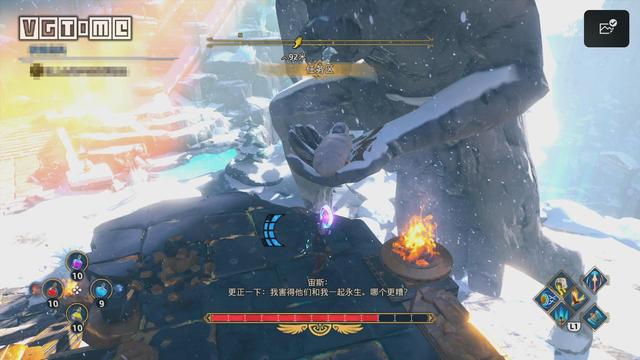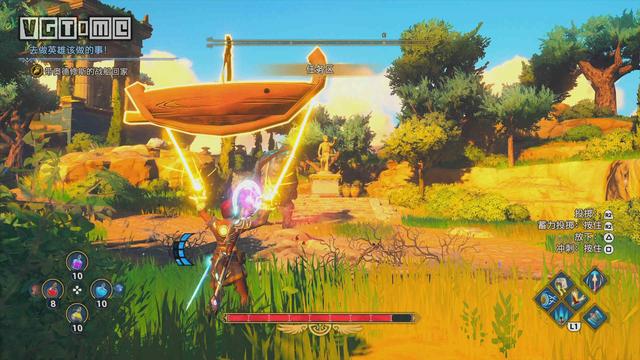 这样的任务设计,让玩家在游玩《渡神纪》主线时很少感受到像其他育碧开放世界游戏那样的重复感。游戏将神话故事与任务进行融合,即把原本只是文字内容的神话用全新的方式演绎了一遍,让玩家能够按照神话的指引去完成任务,确实会让部分玩家产生更多的兴趣。不过这样的设计也会出现些问题,那就是如果玩家一不留神,没看到宙斯和普罗米修斯的对话,那就会错过非常重要的攻关提示。游戏中有个谜题需要玩家将象征婴儿时期的宙斯雕像放到他父亲克洛诺斯的雕像的手上,那句对白正好我没注意到,结果就只能像无头苍蝇一样带着宙斯雕像到处试。