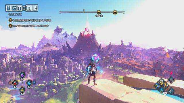 仔细向远处眺望,可以看到大量有趣的建筑,这些建筑很多都包含着大大小小的谜题。长按右摇杆开启远视功能,可以对视野内的景色进行观察,如果出现了有趣的内容,游戏就会提示玩家对它们进行揭示来发现新的谜题、收集品或是秘境挑战。