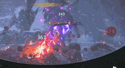在这些战斗系统的基础上,《渡神纪》加入了「神力」这一设计,对应了不同神祇的力量,效果包含范围挑空、冲刺前突、砸地、召唤鸟儿攻击和遥控箭,以及一个类似于《鬼泣》尼禄恶魔右臂的拉取能力。除去鸟儿攻击和遥控箭之外,其余四种神力都可以和轻重攻击结合打出华丽的连段。在地面进行连段攻击后,玩家可以将虚弱的敌人用多种方式挑空,利用重攻击将其击飞,接着将自己拉到敌人身边继续输出,从而提高 Combo 数字。随着 Combo 数的提高,芬尼斯的伤害也会有所增加,击打特效也会有明显变化。