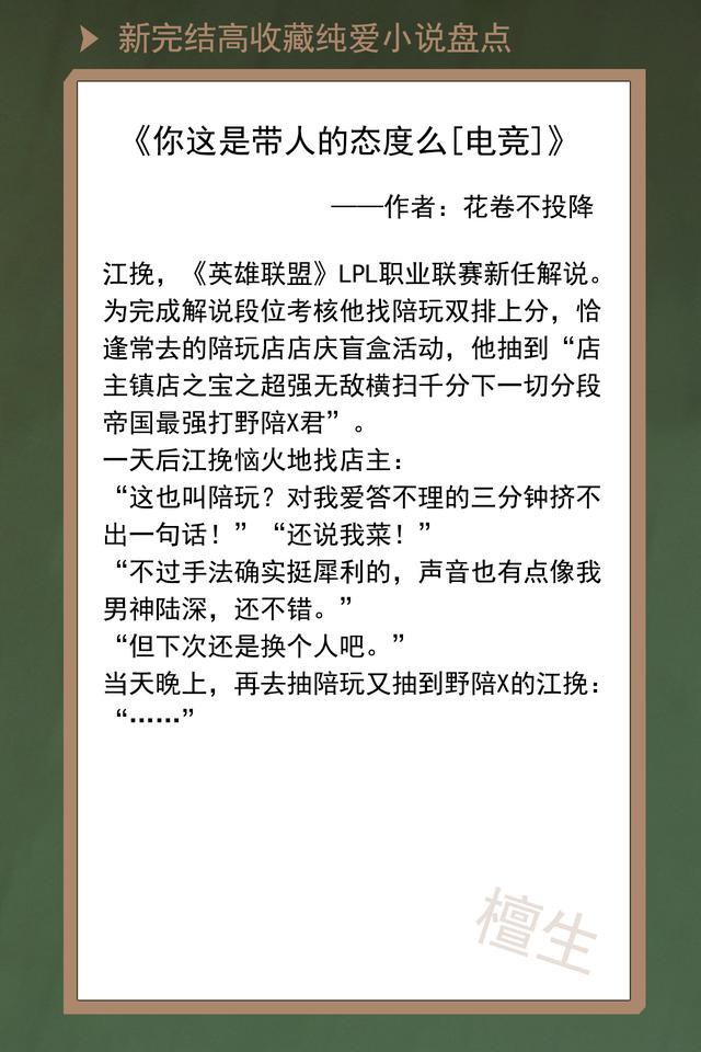 简评:LOL相关文,以职业联赛为背景,以打竞技赛为互动,讲述了一个男神和一个“迷弟”阴差阳错的相识,和温馨有趣的双排过程。江挽是乐观开朗的王牌解说,陆深是外冷内热的冠军野王,他们追逐着梦想,有各种的坚持和骄傲,却成了彼此的羁绊。青春正当燃,理想勇敢追,热血酬知己,这便是快意人生!两个人在一起,生活习惯、口头禅、喜欢吃的东西,潜移默化地一致,这就是爱的印章!作者文笔诙谐,剧情甜丝丝,在甜的基础上不断叠Buff,化成蜜糖入我心扉。