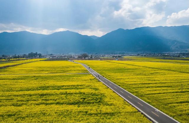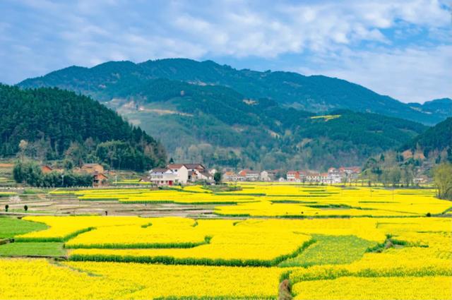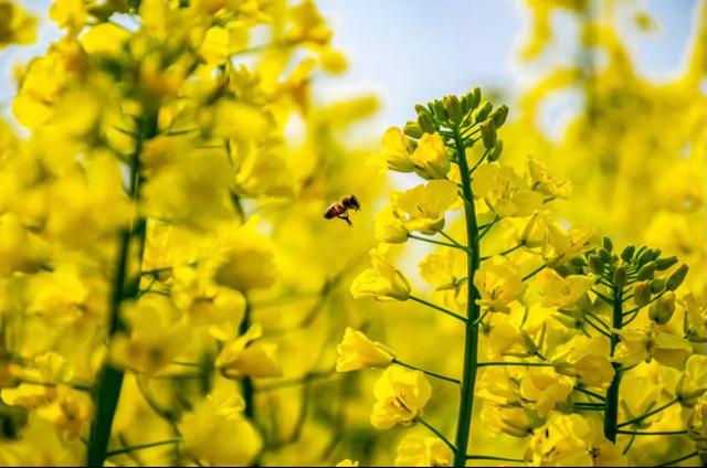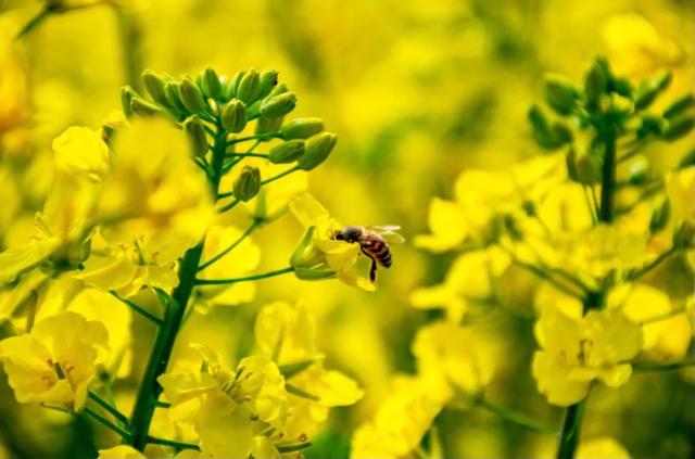 余邵诗云:“油菜花开满地黄,丛间蝶舞蜜蜂忙;清风吹拂金波涌,飘溢醉人浓郁香”。